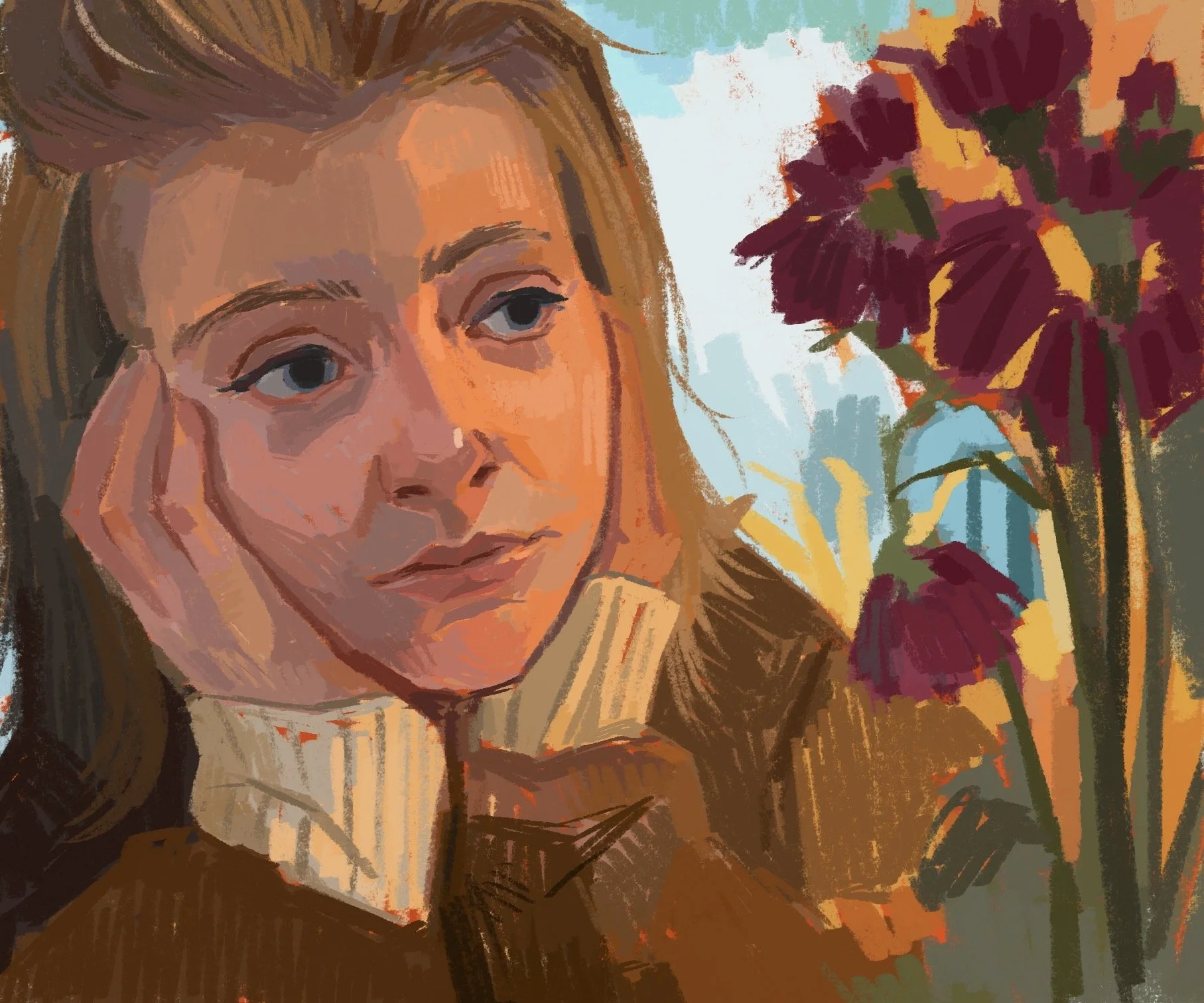 These works explore our presence: a hand resting near a cup of coffee, a gaze lost in thought, the warmth of evening light against a face. Each painting captures a fragment of an ordinary yet personal day.